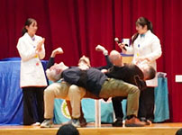 From kindergarten through high school, students gathered in the Big Gym to experience a variety of dynamic experiments. These included a powerful demonstration using a giant air cannon, experiments exploring how sound changes by air density using an opera singer’s voice and musical instruments, an experiment of structural mechanics featuring teachers, and a physiology demonstration that students were able to observe up close. The venue was filled with energy and enthusiasm throughout the program.
