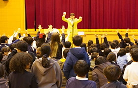 In the magic show, magic tricks that utilized everyday items in an eco-friendly way were shown, as well as science magic incorporating visual illusions. The students enthusiastically participated in the interactive experience.