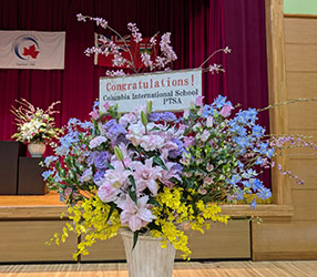 | PTSAからは、お祝いの花と入学記念品を贈呈いたしました。 |